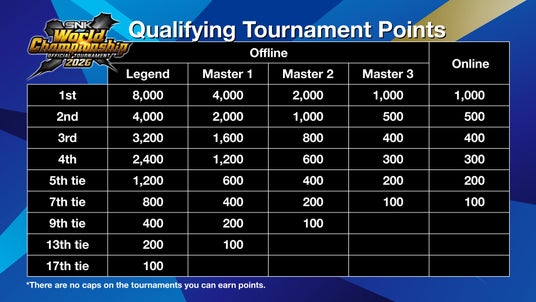 SWC 2026では、予選大会(LCQを除く)のランクと順位に応じたポイントを付与します。累計獲得ポイントの上位選手が本戦トーナメントに出場できます。また獲得したポイントは、1ポイント=1ドル換算で、賞金として後日授与します。