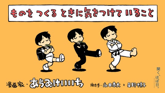 WEBサイト「ほぼ日」がお届けするオリジナル音声番組「聞くほぼ日」。そのラインナップのひとつ「ものをつくるときに、気をつけていること」に、漫画家のあらゐけいいちさんが登場します。