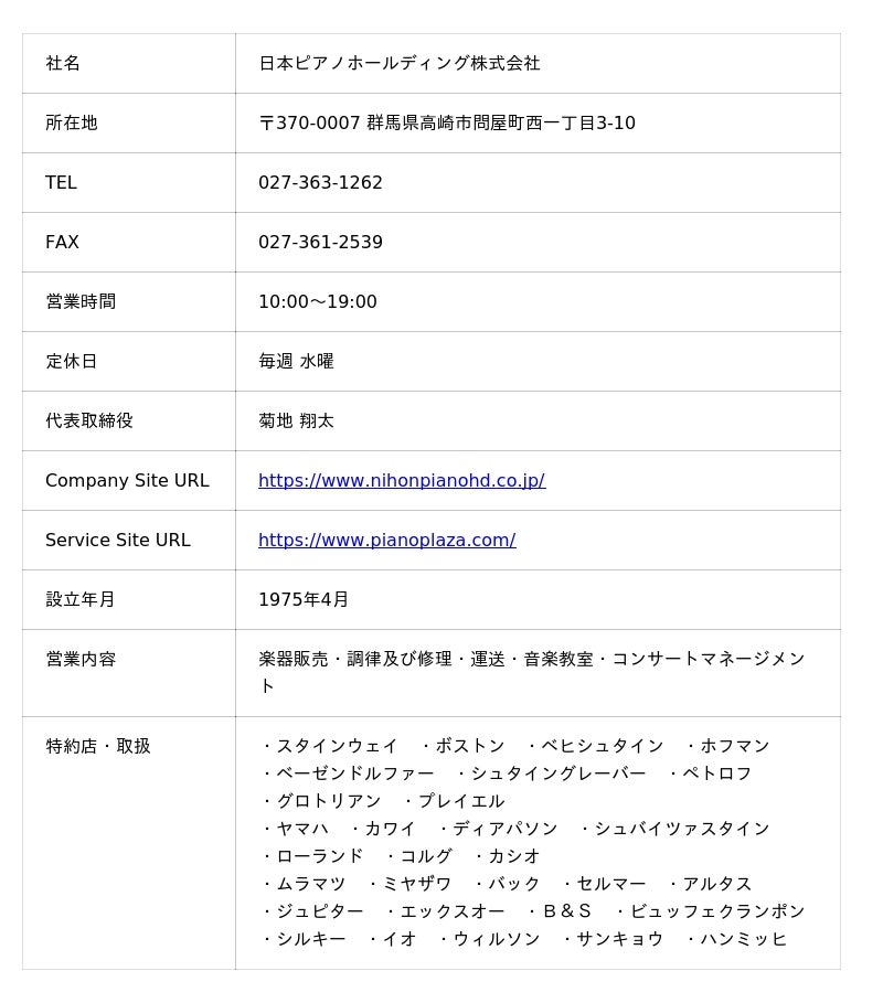 2025年12月19日、日本ピアノホールディング株式会社(本社:高崎市問屋町西一丁目3-10、代表取締役:菊地翔太)は、同社が運営するピアノプラザ群馬高崎本店敷地内にある工房併設のショールーム「ぴあの館」を、アウトレットピアノから再調整中古ピアノまでを展示・販売する「ピアノアウトレット館」へリニューアルOPENします。