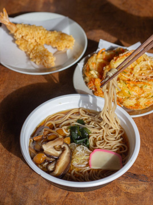 かき揚げや海老天、中条産きのこ、生たまごなどの有料トッピングも用意しており、お好みに合わせた一杯を味わっていただけます。