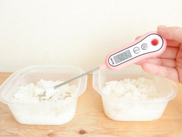 同じ保存容器に炊きたての白米を入れて、保温力の違いをチェックしてみます。