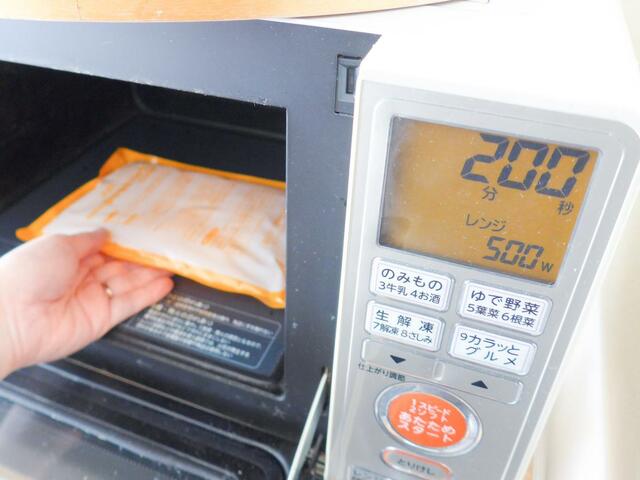 使い方はとても簡単で、500Wの電子レンジで約2分温めたあと、お弁当箱と一緒に持ち運ぶだけ。