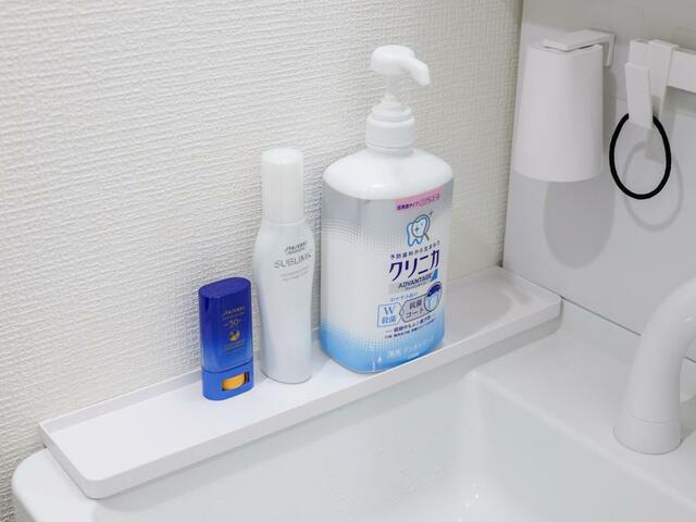 トレーを設置したおかげで、こうして小物を置けるようになり、身支度が少しスムーズになった気がしています。