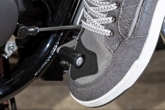 ライディングシューズには欠かせないシフトパッドは左右共に装備することで“いかにもバイク用”といったテイストを極力廃し、街歩きでも悪目立ちすることなく、どんなシーンにも馴染みます。