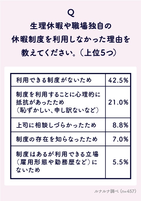 Q. 生理休暇や職場独自の休暇制度を利用しなかった理由を教えてください。