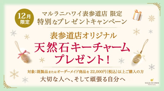 ハワイ発の天然石アクセサリーブランド「Malulani Hawaii(マルラニハワイ)」表参道店では、12月末日の期間限定で、冬のギフトシーズンにぴったりの特別キャンペーンを実施いたします。