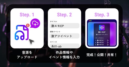 従来の特設ページを用意するにはHTMLコードを編集したり、ページを公開するサーバーを用意したり、試聴用の音源公開のために外部サービスを利用してページ中に埋め込んだりといった工程が必要でした。