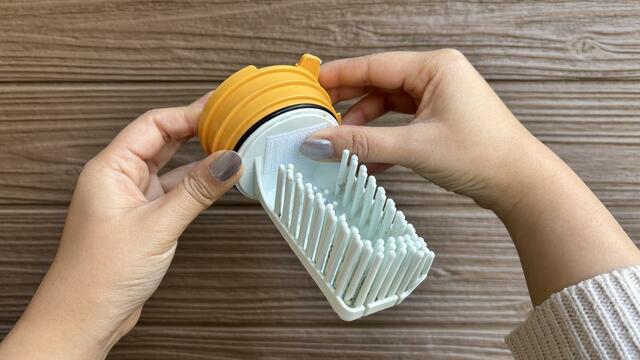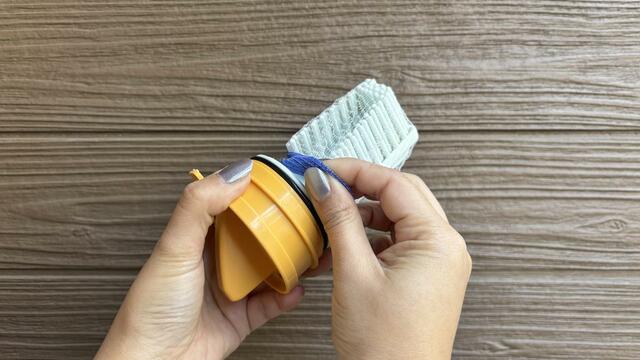 まずは付属のワンタッチテープを糸くずフィルターに貼り付けます。ワンタッチテープは両面テープなので、しっかり取り付けられます。