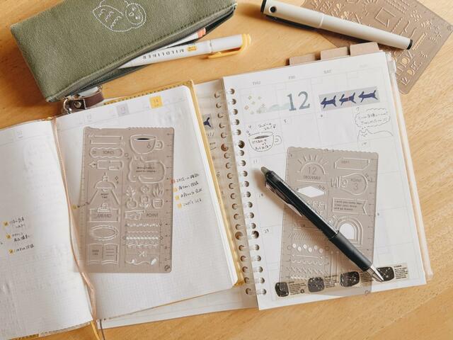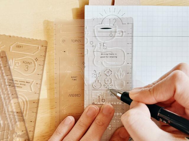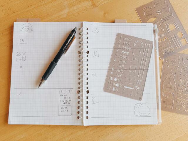 使い方はシンプルで、テンプレートを手帳の上に置いてペンでなぞるだけ。