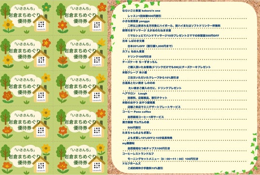 いささんちマルシェ出店や、岩倉を中心とした地域に根ざした飲食店・物販店・サービス提供者の店舗で使える特別な優待券。地域を丸ごと楽しんでもらうためにぜご活用ください!