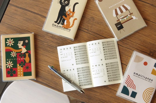 『おまいりさんぽ帖』は、神社・寺院だけでなく、教会やお墓、祠など、特定の信仰にとらわれない「おまいりの場」と、その周辺地域を散策し土地毎の風景やひとやモノとの出逢いを一緒に記録するためのノート。