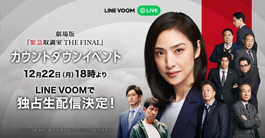 LINEヤフー株式会社は、「LINE」アプリ内のショート動画プラットフォーム「LINE VOOM」にて、2025年12月22日(月)18:00より、劇場版「緊急取調室 THE FINAL」の公開直前イベント「劇場版『緊急取調室 THE FINAL』カウントダウンイベント」を独占ライブ配信します。