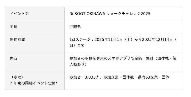 参考:ReBOOT OKINAWA ウォークチャレンジ2025(沖縄県)