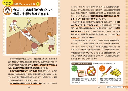 「地政学ってどういう学問?」「用語の意味は?」といった基本から、地政学を通して見た日本、アメリカ、ロシアなど各国の情勢をイラストと図解でわかりやすく解説。今注目したい世界の国々の動き、政治の狙いなどが学べます。