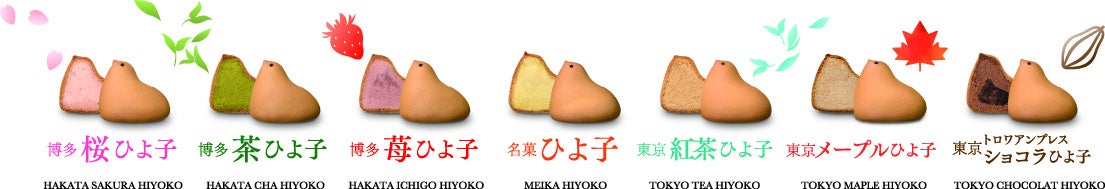 内容:名菓ひよ子 (博多限定:桜ひよ子、苺ひよ子、茶ひよ子) (東京ひよ子:紅茶ひよ子、メープルひよ子、ショコラひよ子) 各1個