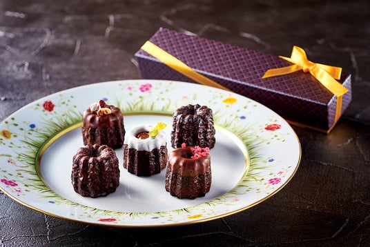 カフェ「レックコート」では、イートインそしてテイクアウトでお楽しみいただける、バレンタインスイーツをご用意しております。店内では、いちごとチョコレートの2種類のフォンダンショコラを楽しめるスイーツプレートをご提供。テイクアウトでは、新作やバレンタインらしいモチーフで仕上げたカットケーキを含む6種類のスイーツをラインアップしました。その他、贈り物にもおすすめな5種の個性的な味わいのショコラ、カヌレアソートも販売いたします。ホテルオークラ京都ならではのアレンジを加えたチョコレートスイーツをお楽しみください。
