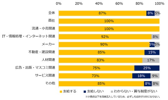 【図4】冬季賞与を「支給する」と回答した企業に伺います。昨年の冬季賞与と比較し、支給額に変動はありますか?(業種別)