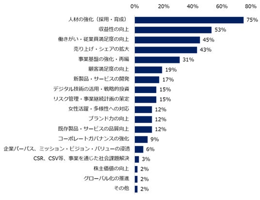 ・まずは収益性の向上を目指したい。女性社員が少ないため新たに採用をしなければならないが、収益を上げていかないとその分の予算が確保できない。(サービス関連/100~299名)