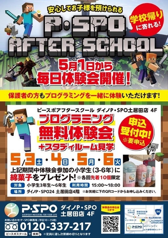 【中学生向け】学校帰りに通える次世代型学習スペース「P・SPO STUDY+」を体験P・SPO AFTER SCHOOLでは、プログラミングを中心に、