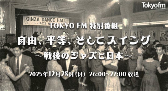 TOKYO FMでは、2025年12月28日(日)26:00~27:00、TOKYO FM特別番組『自由、平等、そしてスイング~戦後のジャズと日本』をお届けします。日本におけるジャズ文化は、終戦直後から、進駐軍クラブやダンスホール、進駐軍向けラジオによって大きく花開き、その後の音楽ビジネスの礎を作りました。戦中は敵性音楽として禁じられていたジャズが、終戦を経て日本の音楽文化に大きな影響を与えることとなりました。この番組では、“終戦”を経験し、進駐軍がもたらしたジャズ文化に影響を受け、現在も第一線で活躍するミュージシャン、レコードディレクターの方々の証言を元に、終戦直後のジャズ史を紐解いていきます。番組パーソナリティは土岐麻子、インタビュアーは音楽ジャーナリストの小川隆夫が務めます。