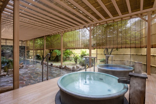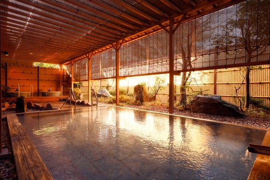 ホテル到着後は、ウェルカムドリンクとして提供する山陰特産のしじみ出汁でほっと一息ついたら、露天風呂で大山温泉の湯をゆったりと堪能するのがおすすめです。筋肉疲労に対する適応症も認められている泉質で、雪山で冷えた身体を心地よく癒やします。サウナや水風呂も備えており、滞在中のリフレッシュに最適です。湯上がりには温泉ラウンジで甘酒を用意しており、温まった身体をそのままいたわる特別なひとときを過ごせます。