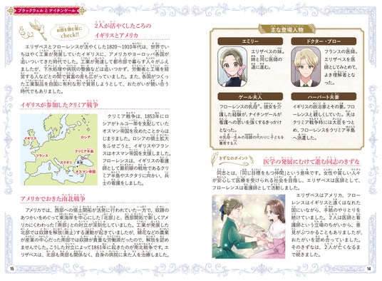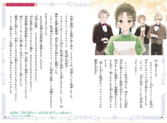 困難をのりこえ、世界初の女性医師になったエリザベス・ブラックウェルと、近代看護の基礎をきずいたフローレンス・ナイチンゲール。