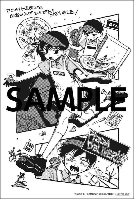 また、全国アニメイト・アニメイト通販で2025年12月23日~2026年2月1日まで【『OMORI』3巻 発売記念フェア】を開催いたします。期間中、1巻または2巻をご購入いただくと、サニーがピザのデリバリーに励む様子を描いた特典「イラストカード」を1枚プレゼントいたします。