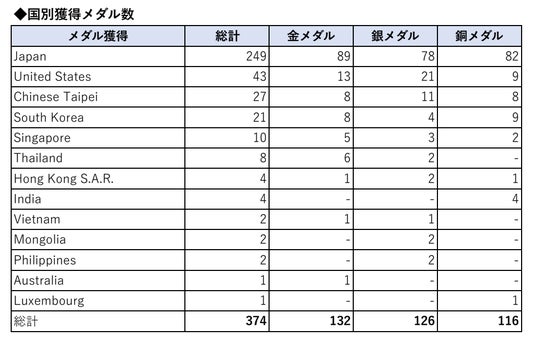 ■国際大会としての広がり:国別獲得メダル数