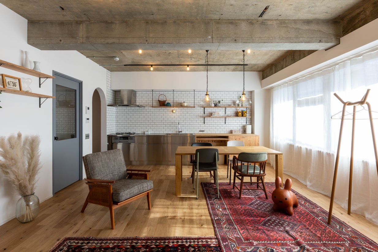 メインとなるLDKの内装・インテリアには、ツクルバが提供する定額リノベーションパッケージ「ライフカタログ」全7種のうち、「Down.town」を採用しました。