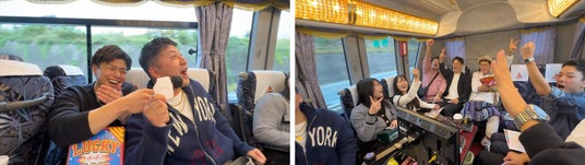 バスの車内では、参加者全員に豪華景品が当たるビンゴ大会も開催され、大いに盛り上がりました。
