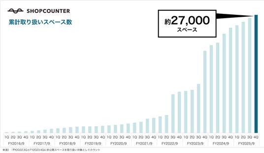ショップカウンターの累計取扱いスペース数の推移