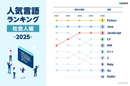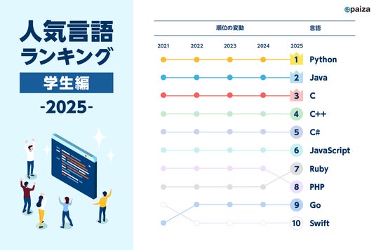 ITエンジニア向け転職・就職・学習プラットフォーム「paiza(パイザ)」を運営するpaiza株式会社(東京都港区、代表取締役社長/CEO 舘康人)は、paiza(https://paiza.jp)登録者のITエンジニア、プログラミング学習者を対象に「プログラミング言語に関する調査(2025年版)」を実施しました。