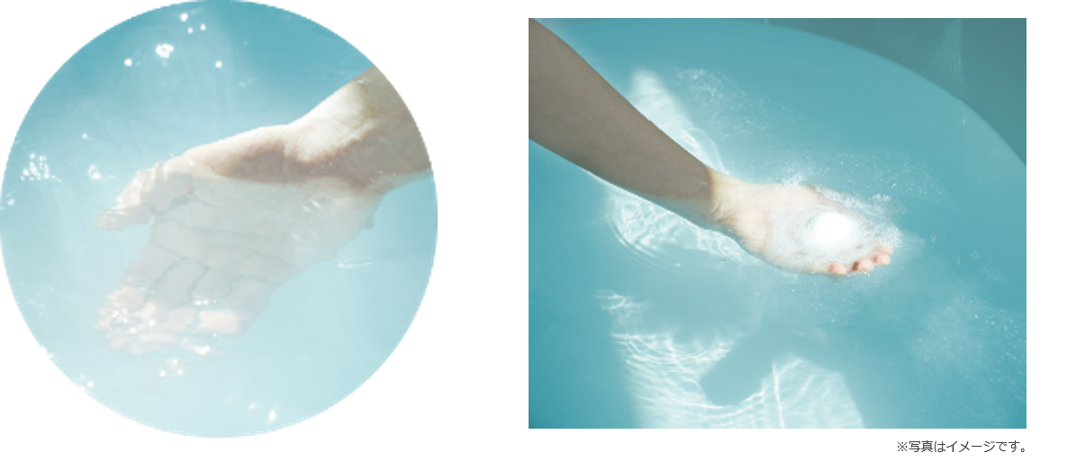 & HUG timeではバスボールの微発泡化、易溶化、発泡時に発生する炭酸ガスの抑制、咳き込み防止にも取り組んでいます。
