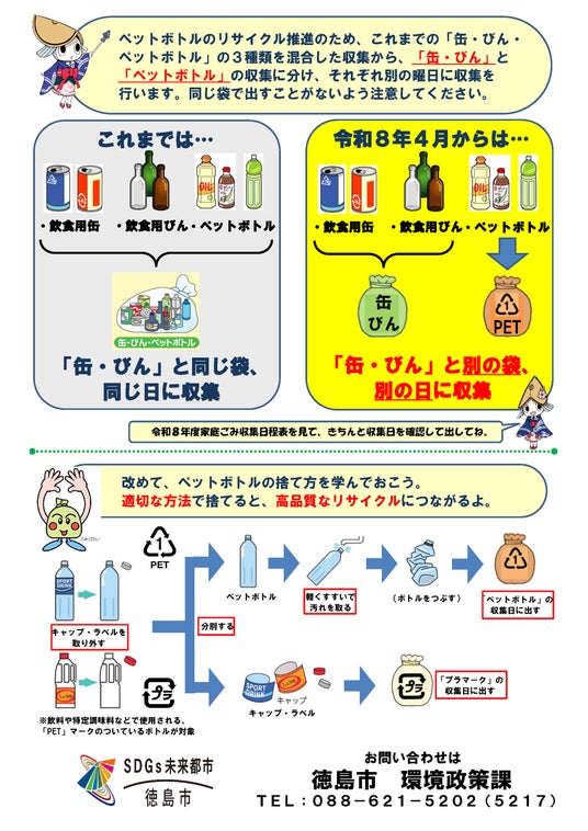 詳しい分別方法や収集日などは、令和8年2月中旬から3月末までに各ご家庭に配布予定の「令和8年度家庭ごみ収集日程表」や、「広報とくしま」、「徳島市ホームページ」などでお知らせさせていただきます。