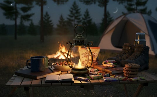 冬のキャンプシーンに灯りが揺らぐ雰囲気のあるLEDランタン