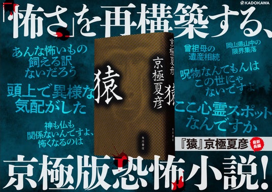 株式会社KADOKAWA(本社:東京都千代田区)は、京極夏彦氏の新作長編小説『猿』を2025年12月22日(月)に発売しました。本作は、〈巷説百物語〉シリーズや〈百鬼夜行〉シリーズで知られる京極夏彦氏が、小説家デビュー30周年を迎えた2024年より1年間、雑誌「怪と幽」で連載した長編です。