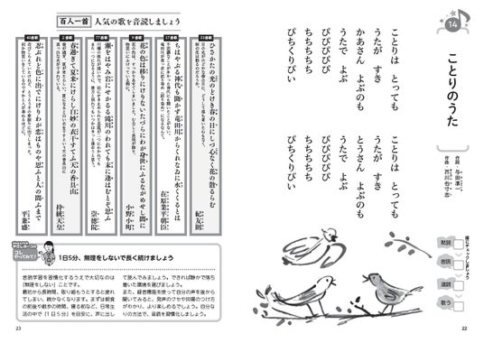 本書の使い方は、黙読→音読→速読→歌う の4ステップ。【黙読】文章の下準備を。普段使わない言葉や語り口を楽しんで。