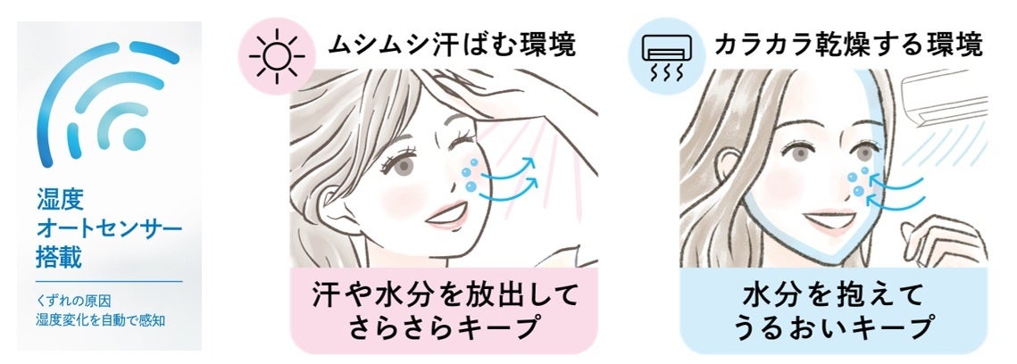 ―くずれの原因の一つである湿度変化を自動で感知、水分量をコントロールすることで、快適な肌状態をキープする「湿度オートセンサー」搭載