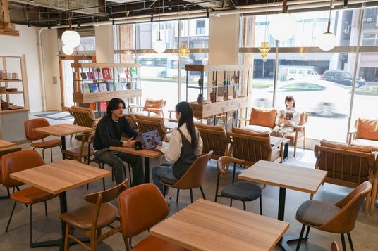 the from 昭和通り店1F1Fには、こだわりのドリンクやスナック、パンをご用意し、気分転換や会話を楽しめるオープンなスペースが広がっています。