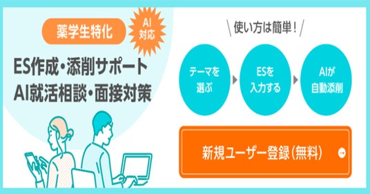 薬学生向けに最適化したAIが、ES作成や就活の悩みに24時間対応します(※当社調べ:業界初)。