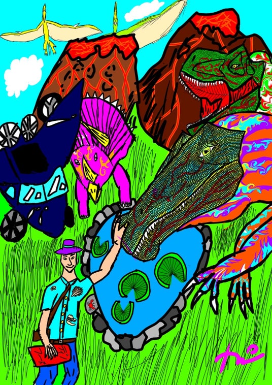 未来では恐竜が復活して、一緒に遊びたいです。