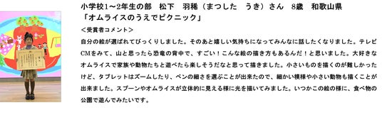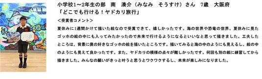 また、審査員からは、「自分の日々の生活を起点に制作された作品や、応募者みなさんの頭の中で描く創造的な夢の世界を描いた作品を多く拝見し、審査員一同、パワーを受け取りました」とコメントをいただきました。