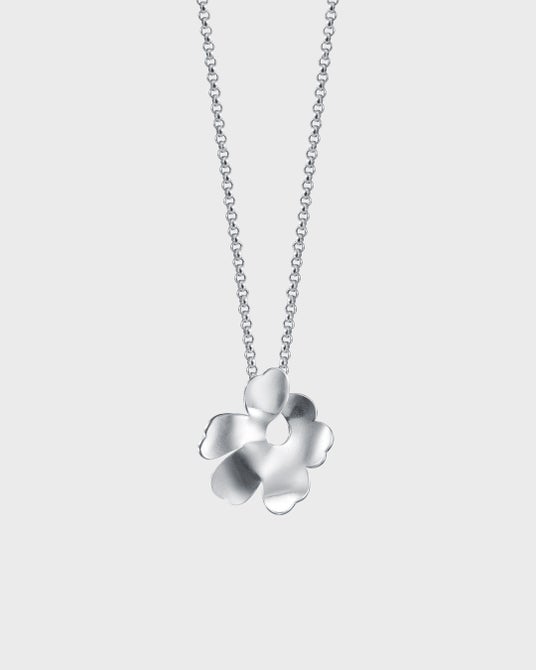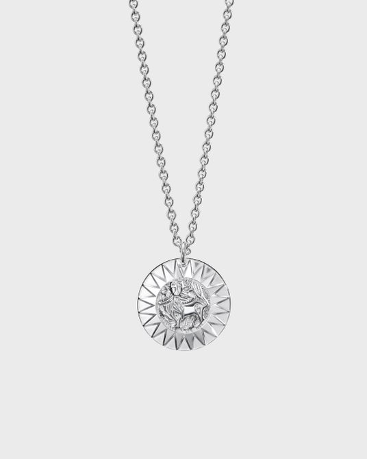 Taikalintuネックレス 「運を呼ぶ」 ¥32,670 / ブレスレットチェーン ¥29,150 / Pohjankarhuミニチャーム「知恵」 ¥11,550/ Osmansolmuミニチャーム「幸運」 ¥11,550 / Aurinkoleijoonaラージペンダント 「勇気」¥37,840 (税込価格)