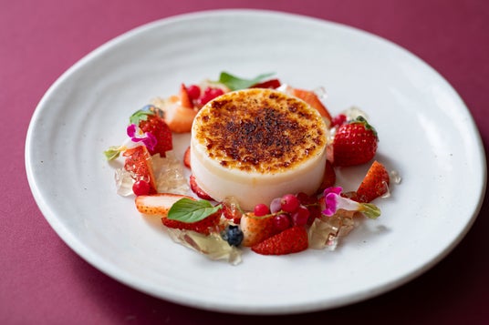 苺がアクセントのどこか懐かしい味わいの“クリームチーズのシブースト ~苺とともに~”は、まるでアイスクリームのようなまろやかな口どけと、カリっと香ばしいキャラメリゼが絶妙。