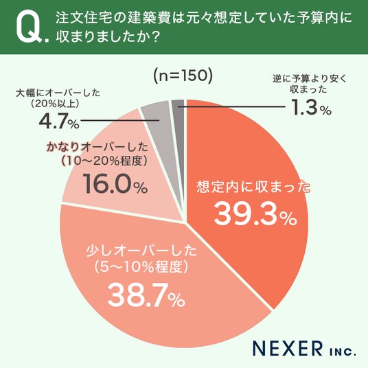 注文住宅の建築で、予算内に収められたのは約4割に過ぎず、約6割が予算オーバーを経験しています。