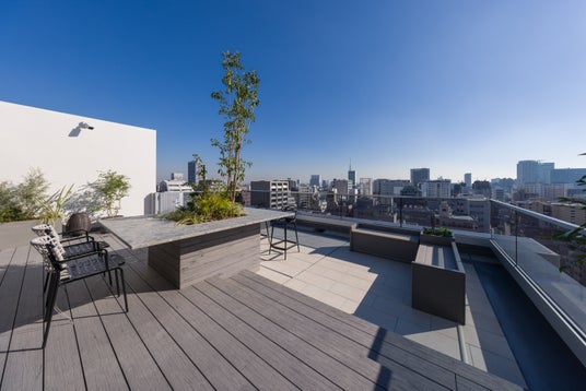 共用部には無料Wi-Fiを備えており、最上階の共用廊下から直接繋がる屋上にあるスカイラウンジや1階のエントランスホールは、デスクワークや待ち合わせ、寛ぎの場として利用可能です。