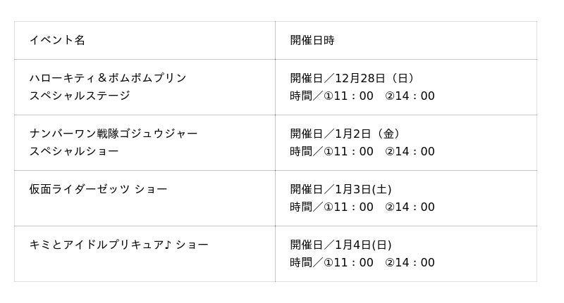 本イベントでは、一年の感謝を込めた「大抽選会」を年末31日まで実施するほか、年明け1月2日からは「新春ビンゴ大会」や「お菓子まき」など、新年の幕開けを祝う企画を多数ご用意。