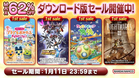 株式会社バンダイナムコエンターテインメントは、ダウンロード版ゲームをお得に購入可能なセールの開催をお知らせいたします。『たまごっちのプチプチおみせっち おまちど~さま!』、『ワンス・アポン・ア・塊魂』、『リトルナイトメア3』など、初セールとなる新作タイトルが登場します。
