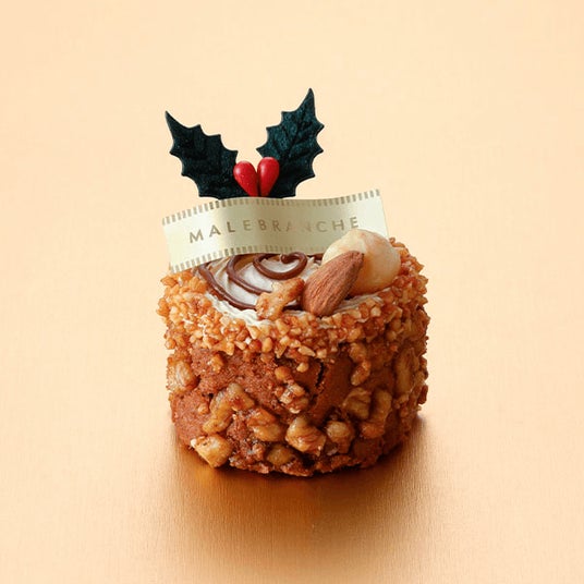 ふわっとやわらかなバニラクリームと生キャラメルを、ナッツたっぷりの生地で包み、森のきり株をイメージしました。バニラクリームのなめらかさと、ザクザクしたナッツの食感をお楽しみください。