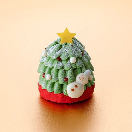 濃厚なピスタチオクリームをやさしくしぼり、かわいいツリーに仕上げました。間に挟んだベリーのムースと中心のチェリージュレが風味のアクセントに。なめらかな口どけに土台のサクサクのフィアンティーヌが加わり、繊細な食感をお楽しみいただけます。